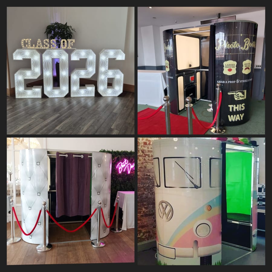 Our photo booth hire is a great addition for special occasions such as weddings, birthday parties, wedding receptions, proms and balls. Guests will be able to take home photos of the occasion on the various different backgrounds. We will also put all the images onto a usb stick for you to keep (this will be given to you on the night of the event, So you can see exactly what fun people got up to!) Our photo booths come in several different body designs and you can choose from white chesterfield, gloss black (Photo Booth design) and retro VW camper.